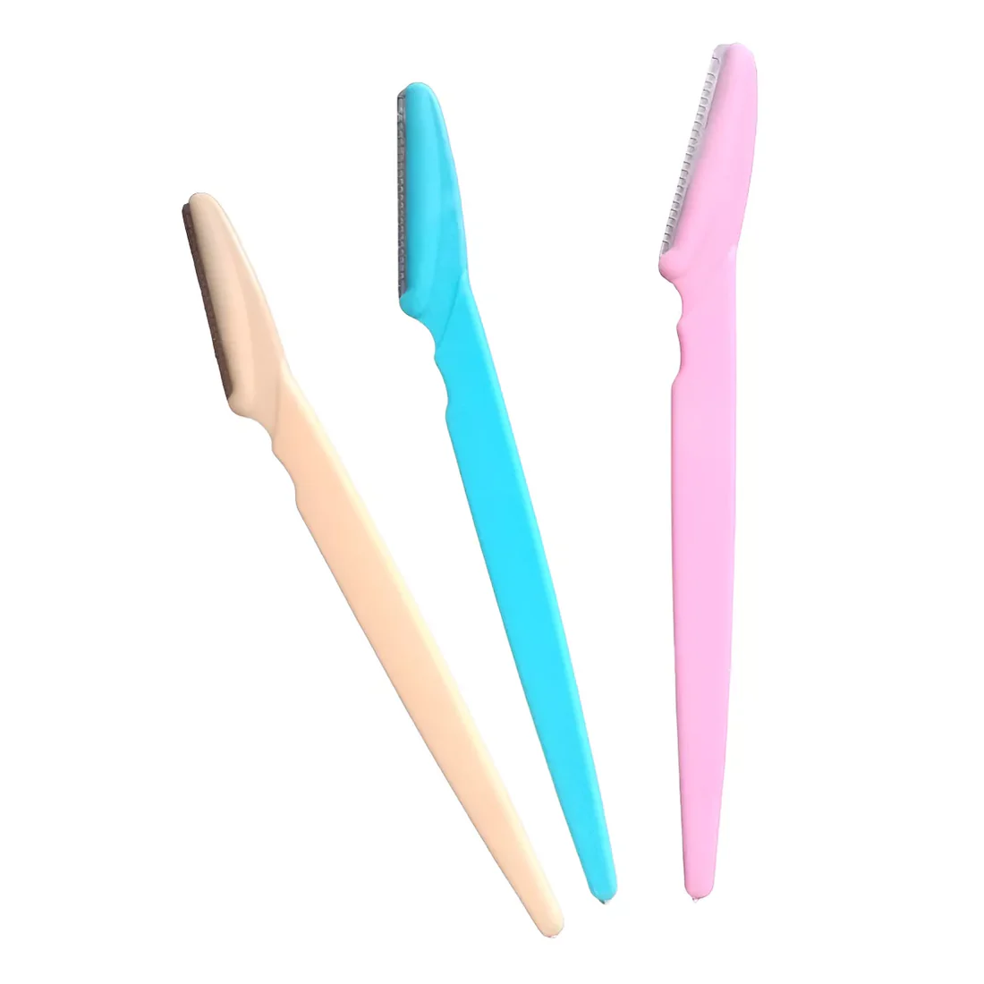 Depilador facial. Mango de plástico. Hoja de acero. Set de tres unidades.